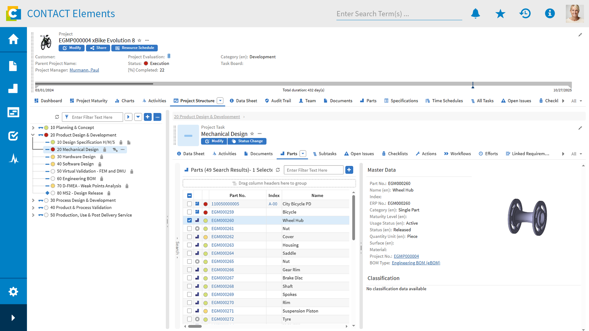 Produktentwicklungsprojekte bergen erhebliche Risiken. Ohne Qualitätssicherung und präzises Controlling drohen Kostenüberschreitungen, Terminverzögerungen und Qualitätseinbußen. Mit den Funktionalitäten, die CONTACT Elements für Controlling und Maturity Management bietet, vereinen Sie die Produkt- und Projektwelt in einer Software. Parallel zum Projektcontrolling steuern Sie den Reifegrad des Produkts. Bei Problemen wie mangelhaften Ergebnissen, Fehlerquellen oder Terminrisiken können Sie so früh intervenieren. Die Kombination aus Controlling-Maßnahmen und Reifegradmodellen sichert Ihre Projektprozesse und Ihre Produktqualität zuverlässig ab.