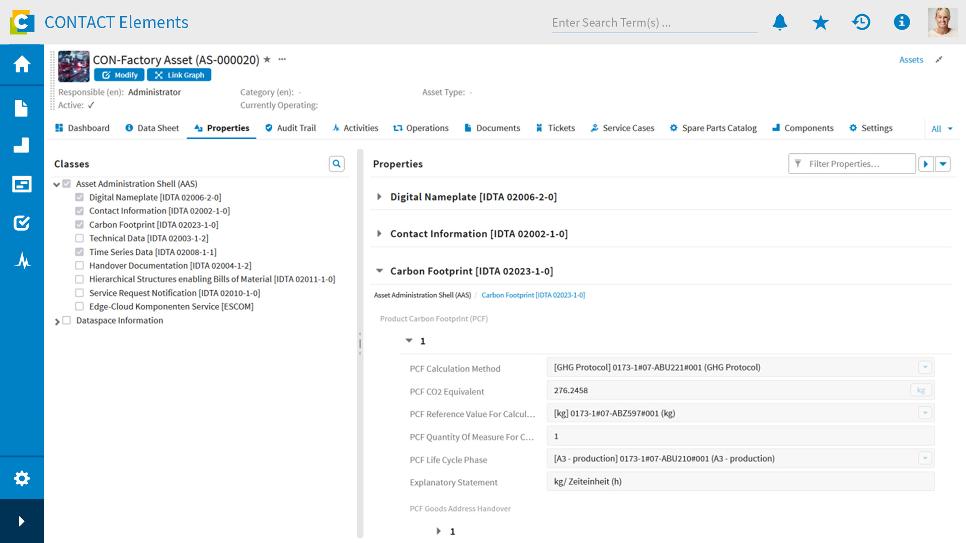 80 percent of a product’s environmental footprint is determined during its development. Sustainability information therefore has its greatest impact in the PLM system, where product data, projects, and processes converge. Right here, the CONTACT Elements integration platform enables you to lay the groundwork for an end-to-end Green Digital Thread which can be extended from design to manufacturing and the operation of machinery, plants, and building technology.