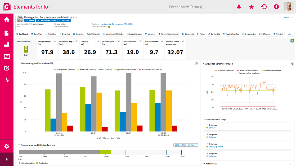Thanks to application modules for the Internet of Things (IoT), you can extend CONTACT Elements into areas such as manufacturing, asset management, and service. The platform is ideal for establishing an energy management system compliant with ISO 50001, which is state-subsidized in some countries. It captures and visualizes the energy consumption of your facilities and buildings in real-time. Your company implements Digital Twins of energy-intensive machinery and assets, creating a foundation for sustainable energy savings. You identify potential savings, generate audit-ready reports, and – by combining this data with production information – strategically mitigate load peaks.