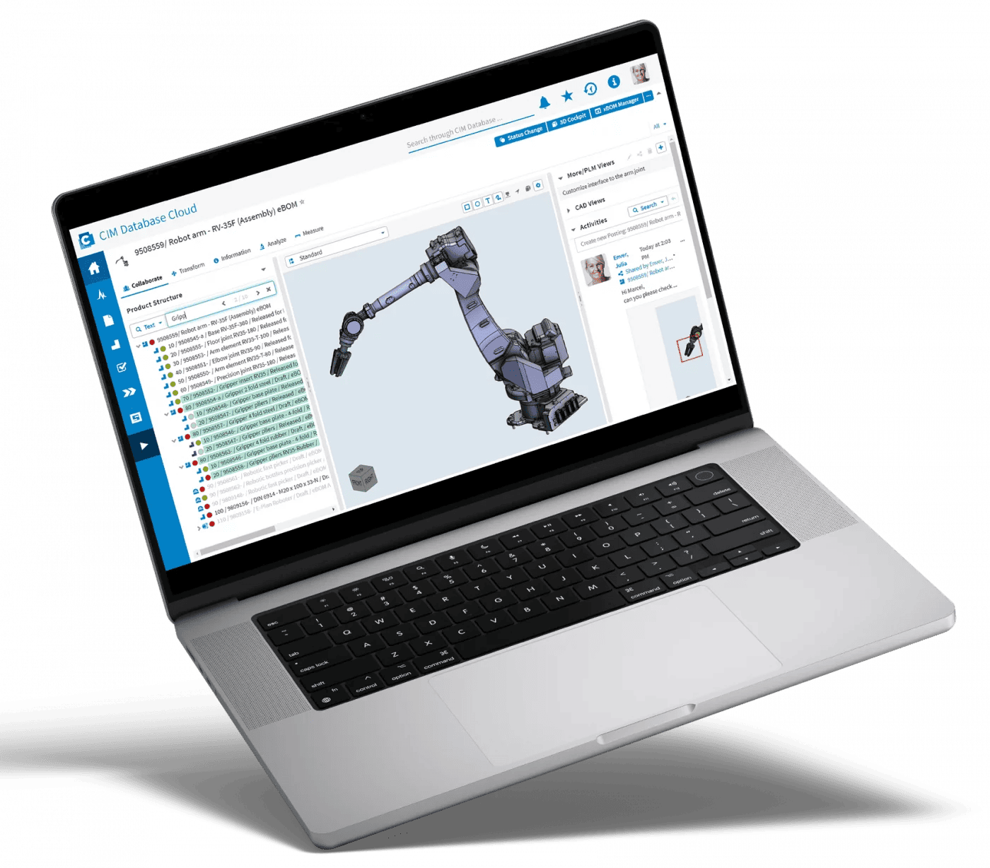 For companies that want to drive Product Lifecycle Management (PLM) forward as quickly as possible, CIM Database Cloud is the right choice. The pre-configured SaaS solution is based on our PLM software CIM Database. It offers all functions for modern data, workflow, project, and change management. Your company can centrally manage all product data and improve collaboration between departments. You benefit from fast onboarding, continuous support, low investment costs, and high IT security.